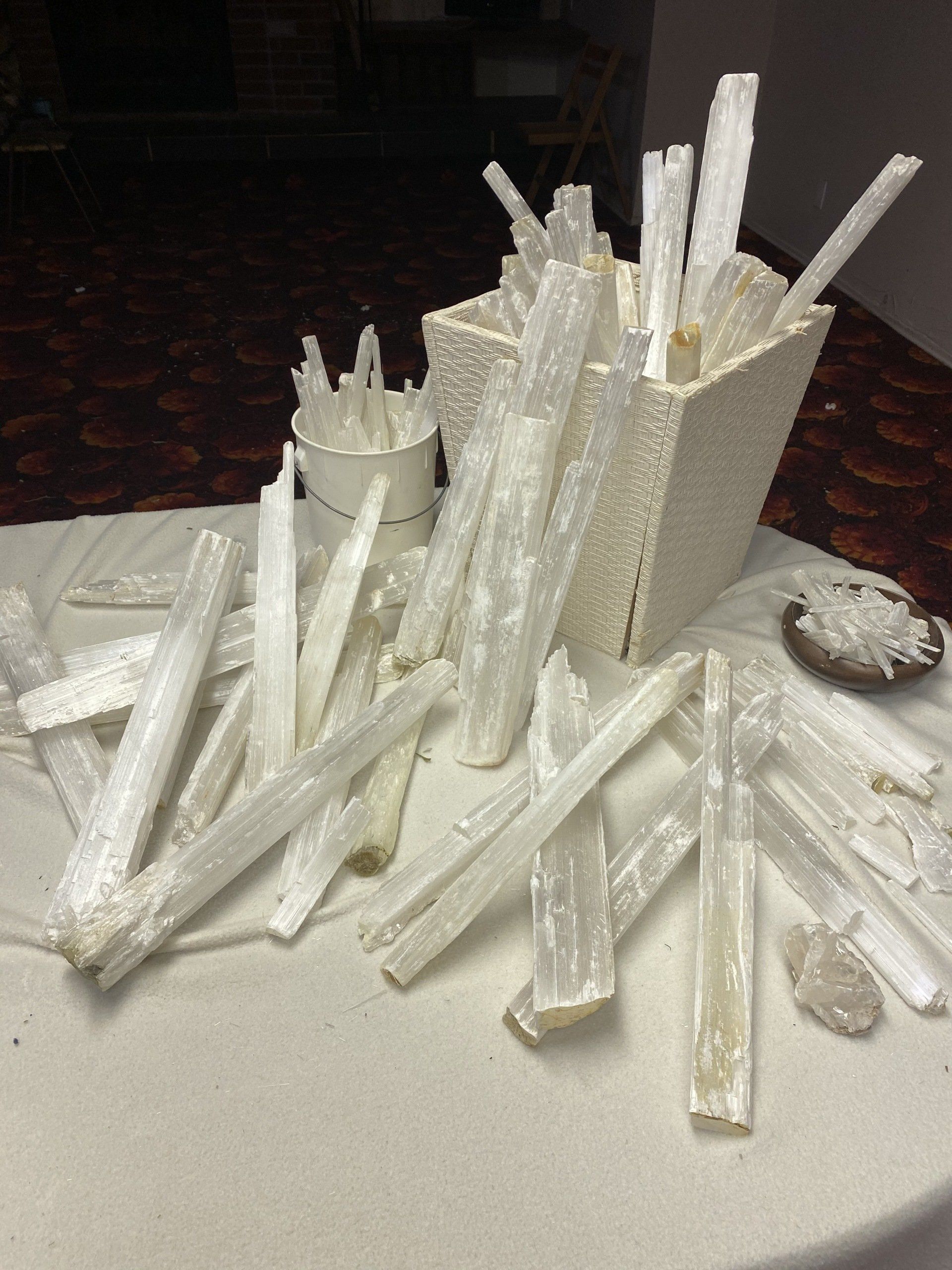 We have a large supply of crystals in stock and will be sending more information on pricing soon. You are welcome to come in-person to our warehouse in Central Alberta to select them yourself.